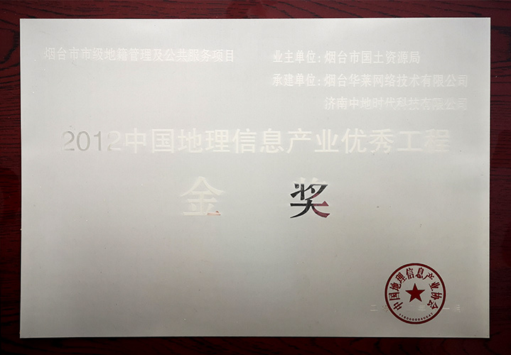 2012中國(guó)地理信息產(chǎn)業(yè)優(yōu)秀工程金獎(jiǎng)