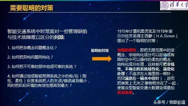由于這些數據的數據量大,類型多,智能交通系統(tǒng)時常需面對一些管理缺陷與技術故障難以區(qū)分的問題,那基于現在的情況,我們如何去解決? 1975年計算機圖靈獎及1978年諾貝爾經濟獎得主西蒙(H.A.Simon)提出了一個聰明的對策:有限的理性,即把無限范圍中的非概念、非結構化成分可以延伸成有限時空中可以操作的柔性的概念、結構化成分處理,這樣就可把非線性、不確定的系統(tǒng)線性化、滿意化處理,進而把表面上無關之事物相關在了一起,使復合型智能交通大數據變得更加智慧落地。