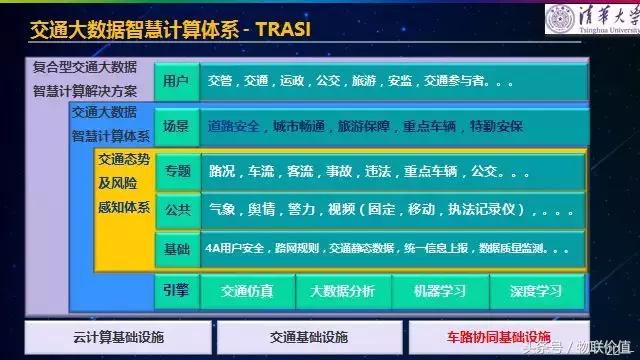 如何解決交通態(tài)勢信息融合、路網風險預警指標、路網事故預測指標、交通知識智能問答、駕駛員信用評分、城市交通出行行為、城市交通出行規(guī)律、城市信號控制優(yōu)化等系列問題?我們進行了整個網絡體系的架構。如下圖所示。