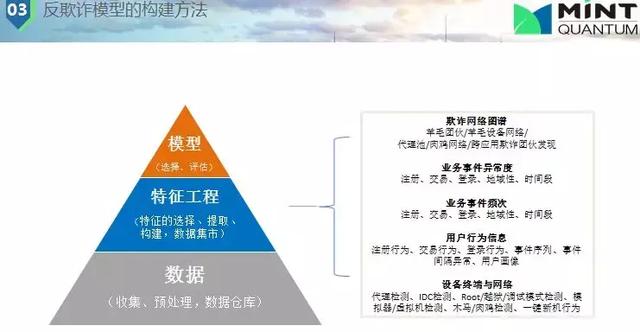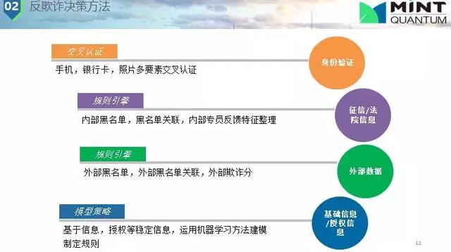 我們常用的一些反欺詐的數(shù)據(jù)和方法有:(1)身份驗證,這個是非常重要的,身份驗證在中國很偉大,如中國解決了第三方欺詐的問題。因為中國手機(jī)實名認(rèn)證,有些時候你很難去做假,這樣我們可以交叉驗證,這樣就提高了欺詐的成本;(2)法院/征信信息,內(nèi)部黑名單,有公司會專門整理這些信息,可以公開給我們使用。用戶信息整合,通過各公司間信息碰撞,規(guī)則匹配,如果發(fā)現(xiàn)過去欺詐行為就不給他提供金融服務(wù);(3)模型,評估用戶行為,進(jìn)行規(guī)則評判他這種行為是不是欺詐,如何減少錯殺準(zhǔn)確抓住欺詐人員。